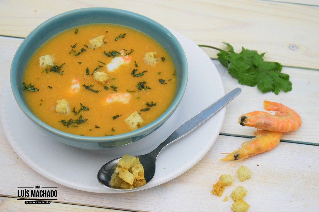 Numa panela junte a cebola com os dentes de alho, a cenoura, a polpa de tomate, o azeite e as cabeças do camarão;